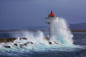 Fyrtårn i hardt værReknes, Molde